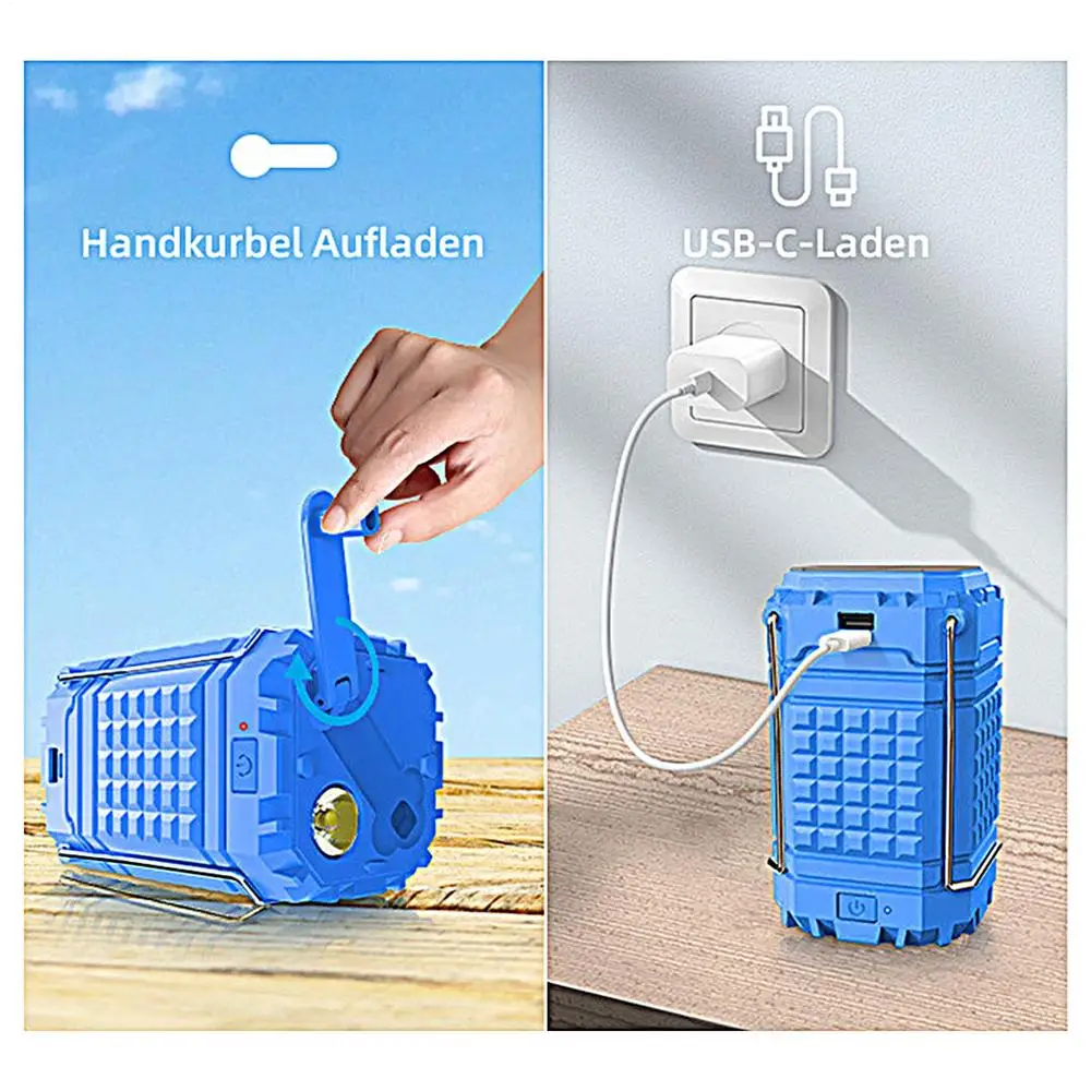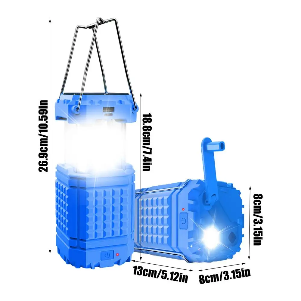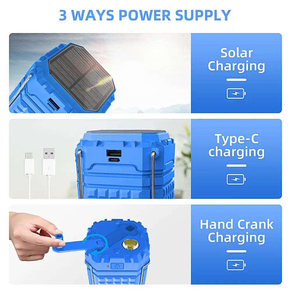 Sustainable Outdoor Companion: Solar camping light supports solar and hand-crank charging, ensuring good power anytime, anywhere for extended outdoor use.